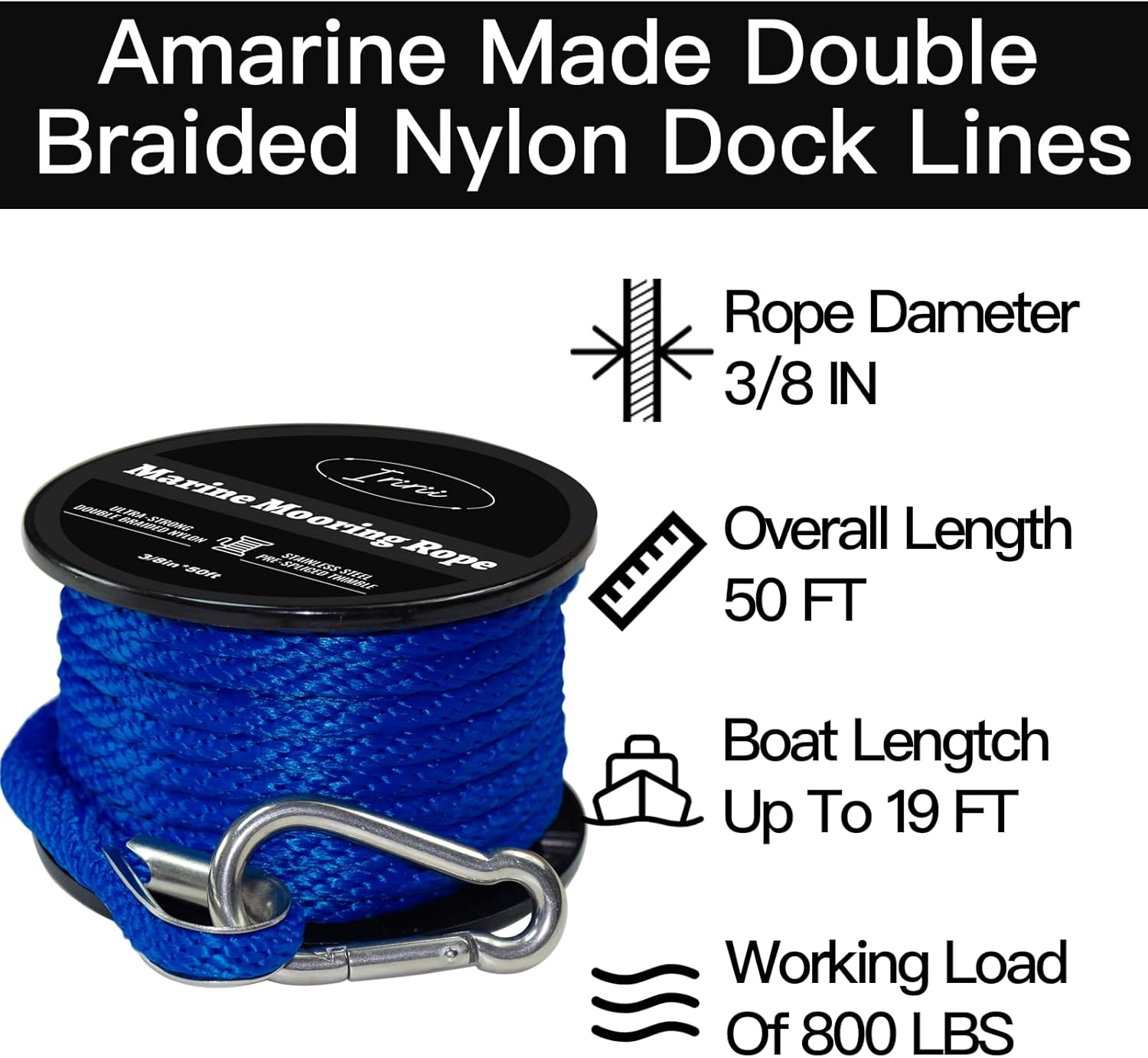 1.【Iririi ️ TOP-QUALITY MARINE GRADE ANCHOR LINE】50 FT Double Braided Nylon Boat 3/8″ Anchor Rope With Excellent Wear-Resistance, Elasticity, And Shock Absorbing,No Need To Worry About Your Boat, Even In Big Waves And Rough Marina Areas.