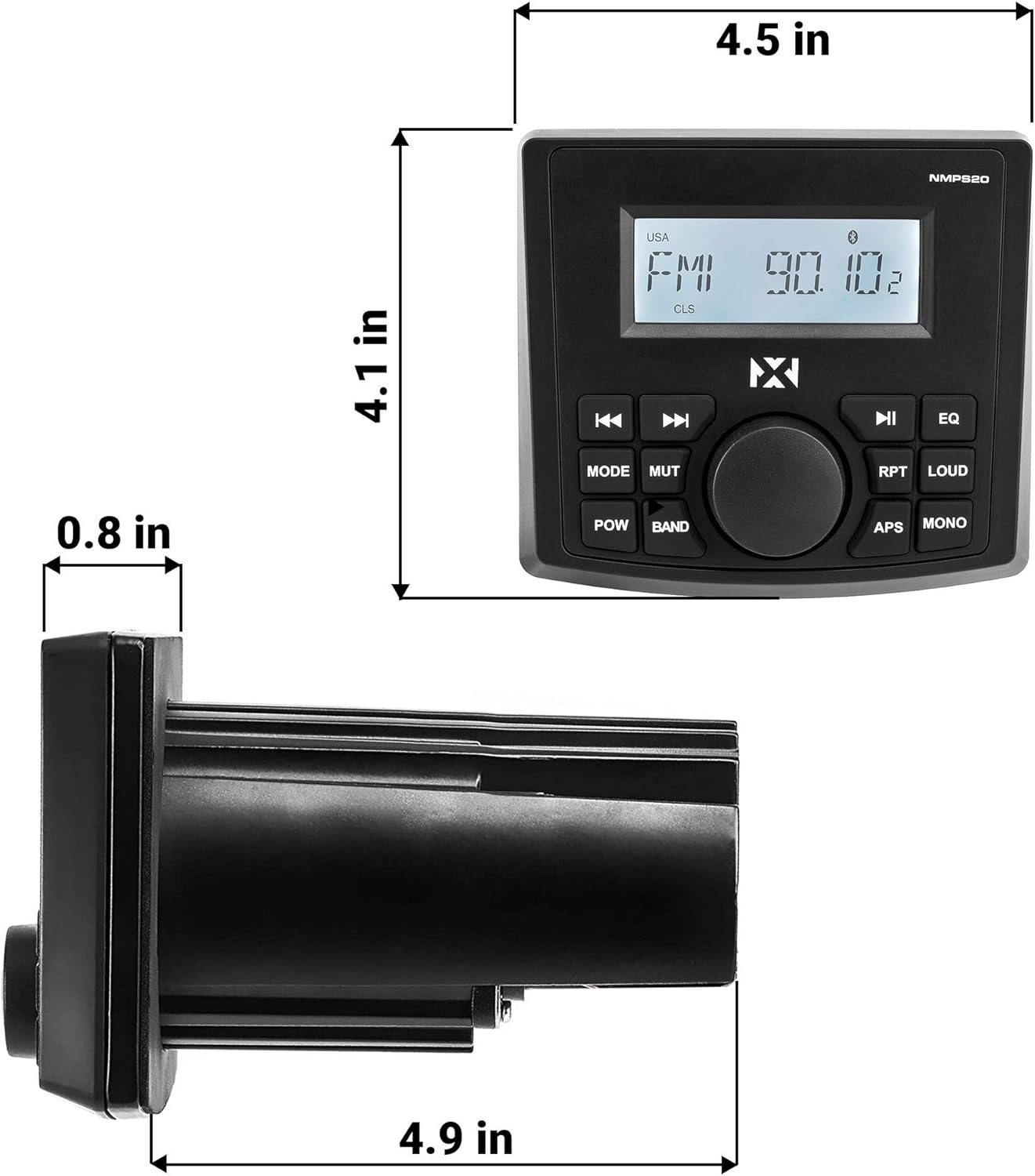 Piloting a boat or wheeling an ATV down a trail is busy work that demands your attention. That’s why the NMPS20 is designed for ease of use. The buttons are easy to read and use, and large enough to prevent accidental clicks. The white, backlit controls are easy to see, day or night.