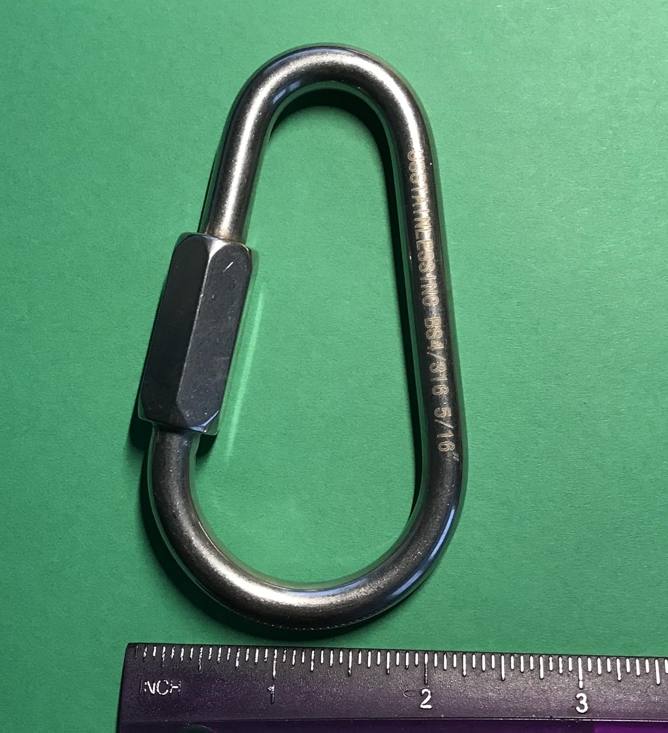 This is for one (1) quality marine grade stainless steel (AISI 316) pear shape quick link 1/4″. Each quick link is stamped 316. Not to be used for overhead lifting. AISI 316 stainless is a premium grade of stainless and is considered by many to be best in class. 316 stainless is corrosion resistant and very durable even in the harshest of conditions. Breaking Load = 4400lbs