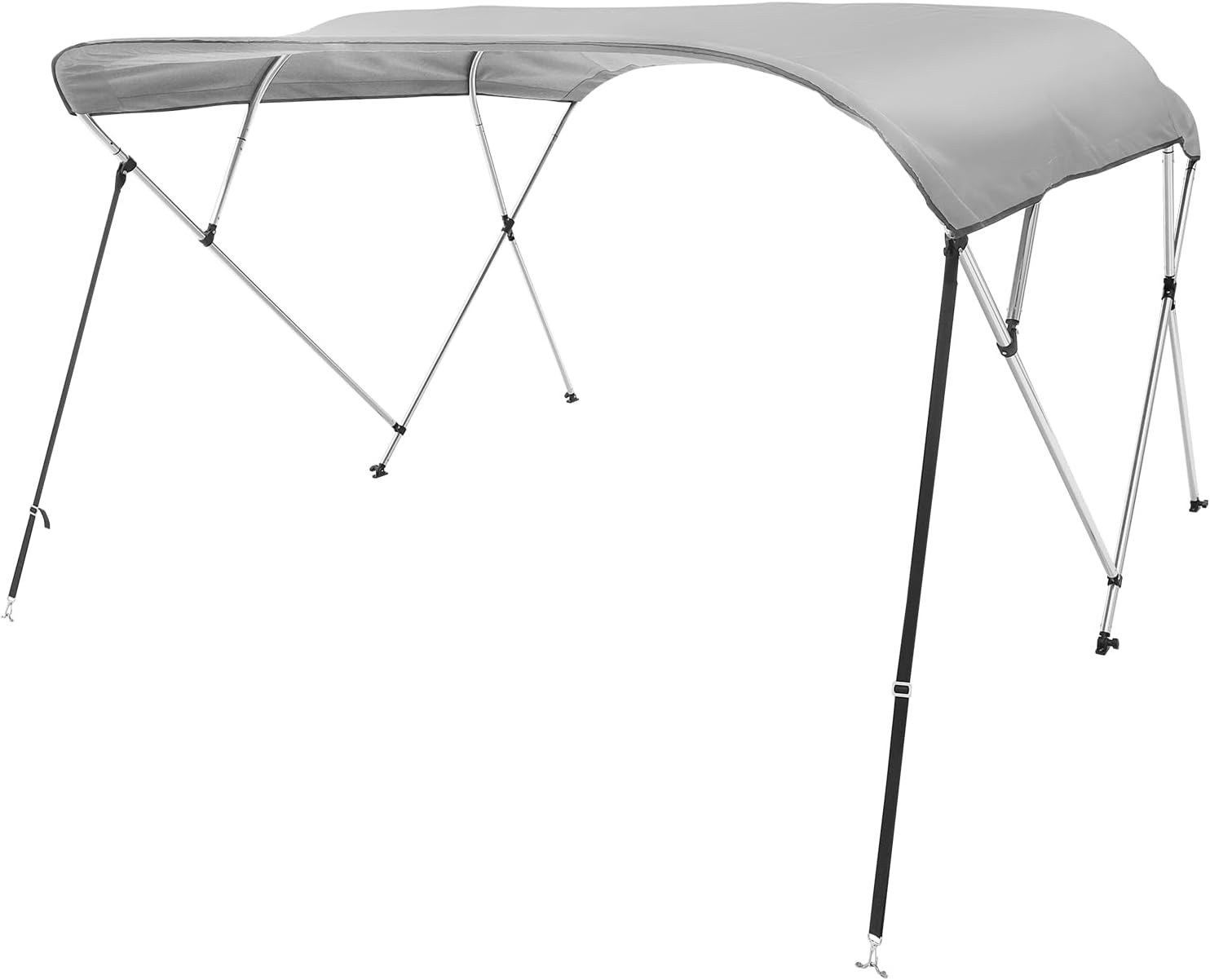 VEVOR 4 Bow Bimini Top Boat Cover, 900D Polyester Canopy with 1″ Aluminum Alloy Frame, Waterproof and Sun Shade, Includes Storage Boot, 4 Straps, 2 Support Poles, 8’L x 54″ H x 91″-96″ W, Light Grey