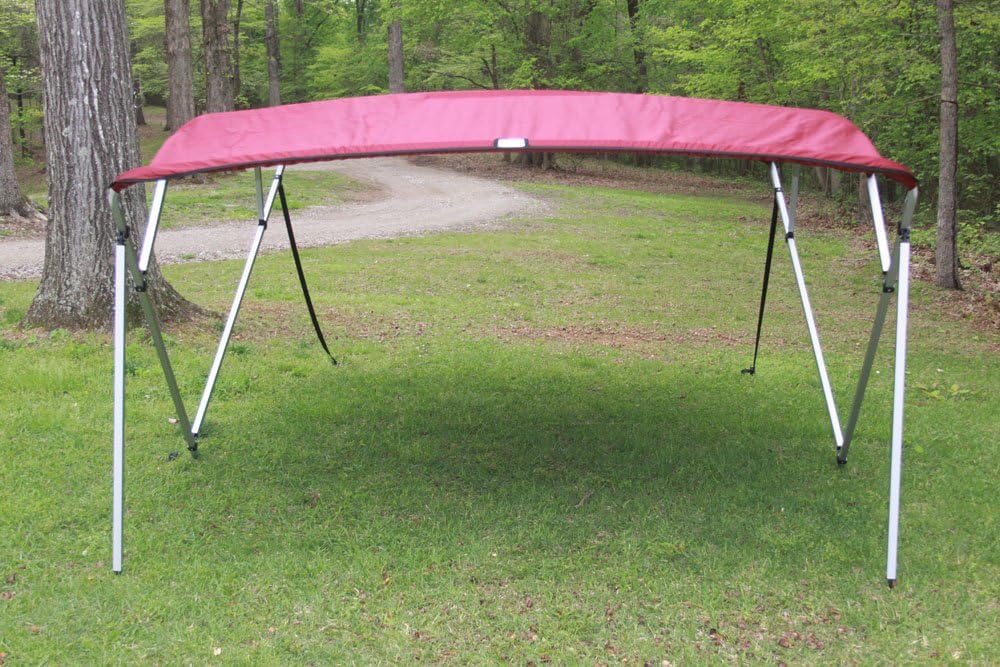 Vortex Burgundy Square Tube Frame 4 Bow Pontoon/Deck Boat Bimini TOP 8′ Long, 91-96